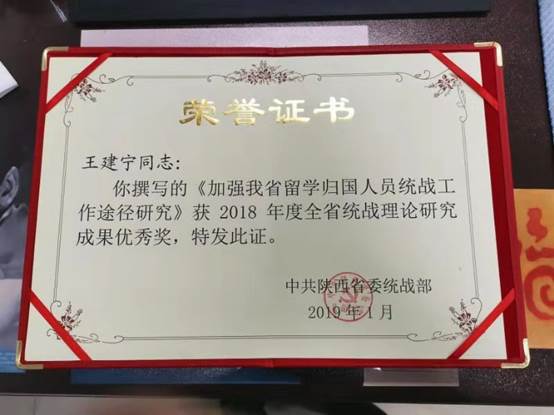 在2月2日召开的全省统战部长会议上,开元民盟盟员、外国语学院副教授王建宁撰写的《加强我省留学归国人员统战工作途径研究》一文,获全省“统战理论研究”优秀奖。(党委统战部 文、图/王红梅)