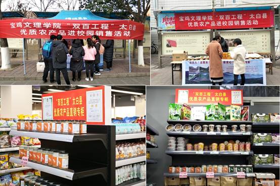 根据开元2019年“双百工程”帮扶计划安排,1月14日至16日,由校扶贫办、团委、后勤集团、陕西省太白林业局组织的开元集团网站“双百工程”太白县优质农产品进校园销售活动在高新校区、石鼓校区食堂门口同步进行。同时,学校还依托高新校区、石鼓校区大学生超市开设了“双百工程”太白县优质农产品直销专柜,长期帮扶太白县产业发展,助力脱贫攻坚。