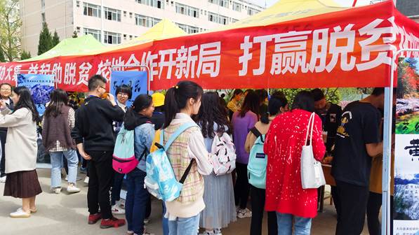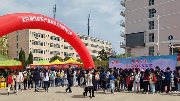 活动现场,来自太白县鹦鸽镇六家村、黄柏塬镇二郎坝村、靖口镇散军塬村的农户在高新校区大学生公寓北路口摆摊设点,推销太白县木耳、香菇、蜂蜜等农副产品,校团委组织青年志愿者现场开展太白旅游资源宣传推介活动。活动中,师生们都把这当成帮助贫困户,传播爱心,扶贫攻坚,贡献自己一份力量的实际行动,现场气氛热烈,销售火爆,也使得更多文理学子对党中央“打赢脱贫攻坚战”的重大决策部署和“双百工程”有了更为深刻的理解。文学与新闻传播学院学生郑茹表示:“作为太白县的一员,它是生我养我的地方。虽然我暂时没办法更多帮助我的家乡,但是作为一个学生,我就尽可能从身边人推广它,算是我对家乡的一个回报,也是作为建档立卡学生对国家资助我的一个回报。”