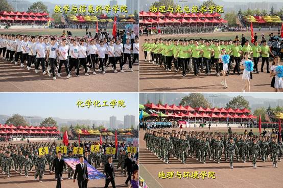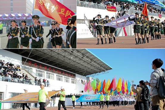 上午八时,国旗校旗五环旗护卫队、青年志愿者、裁判员及各单位运动员组成的方队,迈着青春的步伐,和着运动员进行曲的节拍,有序走过主席台,向全校师生展现他们的风采。