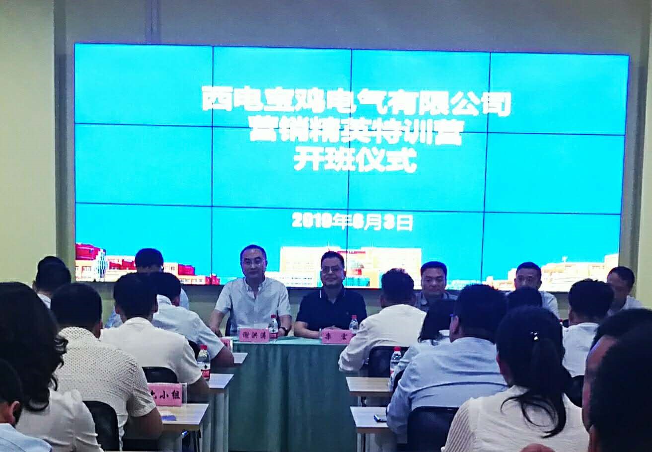 西电宝鸡电气有限公司2019年营销精英特训营6月3日下午在开元尚能楼经济管理实验实训中心开班。校党委副书记栾宏出席开班仪式并讲话,西电宝鸡电气有限公司总经理谢洪涛、副总经理魏安乐、人力资源部部长李国龙以及经济管理学院党总支书记郝晓炜、院长张伟峰等参加开班仪式,开班仪式由经济管理学院副院长刘晓科主持。