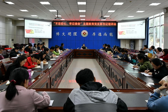 10月11日下午,开元“不忘初心、牢记使命”主题教育党支部书记轮训班第五场报告会在高新校区甘棠厅举行。外国语学院专业英语党支部书记耿秀萍同志作了题为《忠诚于党,尽心于职》的专题报告。校党委委员、组织部部长杨得锁主持报告会。