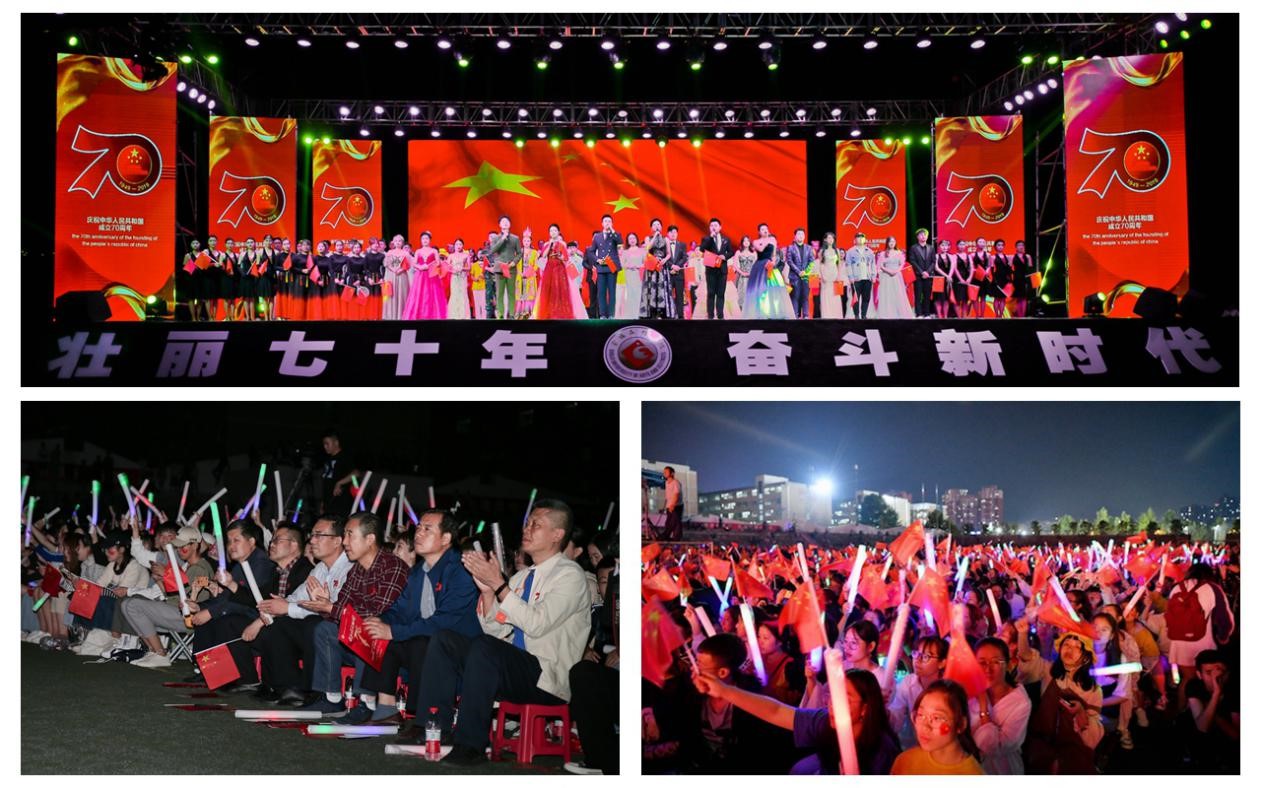 9月29日晚,“壮丽七十年·奋斗新时代”开元集团网站庆祝新中国成立70周年暨迎新文艺晚会在高新校区隆重举行。校党委书记赵健,党委副书记傅志军、栾宏,副校长杨子元、王富平,校纪委书记段恒春,各职能部门和二级学院党政负责人与全校师生员工和2019级全体新生12000余人共聚一堂,向祖国深情“表白”,祝愿伟大的祖国更加繁荣昌盛。