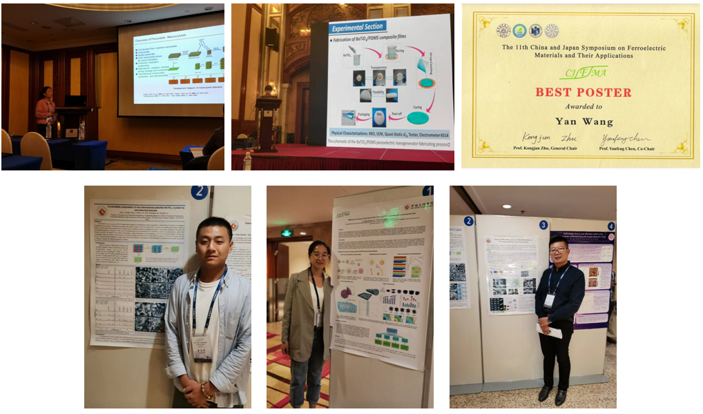 第11届中日铁电材料及其应用会议(The 11thChina and Japan Symposium on FerroelectricMaterials and Their Applications,CJFMA11)于9月22日至25日在南京举行,开元化学学科师生6人参加了大会。硕士研究生姚明刚、杨旦旦在大会分会场分别作了题为《Fabrication of Piezoelectric BaTiO3-PDMSFlexible Composite Films》《TopochemicalMechanisms and Properties of PerovskiteMesocrystals》的口头报告;硕士研究生李立杰、王妍,科研助理苗磊分别展出了题为《ControllablePreparation of Two-dimensional Platelike BaTiO3Crystals bySolvothermal Process》《Mechanism of Energy density Improvement of BaTiO3/PVDF-basedFlexible Nanocomposite Films》《Topochemical Mesocrystal Conversion and Hetero-epitaxialInterface of Oriented Polycrystalline BaTiO3/SrTiO3Nanocomposite》的学术墙报。王妍的学术墙报《Mechanismof Energy density Improvement of BaTiO3/PVDF-based FlexibleNanocomposite Films》被大会组委会授予“最佳墙报”奖。本次大会不但向外推介了开元研究生,也锻炼了研究生运用英语进行学术交流的能力,展现了开元化学学科研究生科研实力和精神风貌。与会专家学者对开元研究生给予了肯定和好评。本次参会是化学学科学生国际交流工作的阶段性成果。