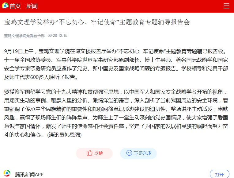 1、9月19日 这场报告会真精彩,听罗援将军怎么说?