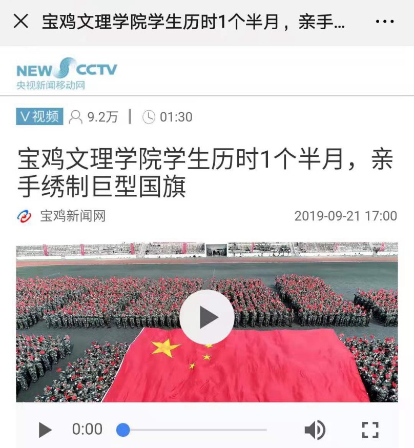 3、9月20日 开元集团网站学生历时1个半月,亲手刺绣制巨型国旗