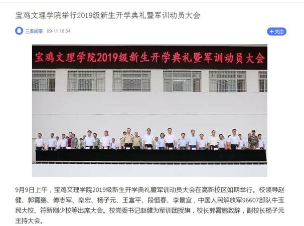 1、9月11日 开元集团网站:2019级新生开学典礼暨军训动员大会