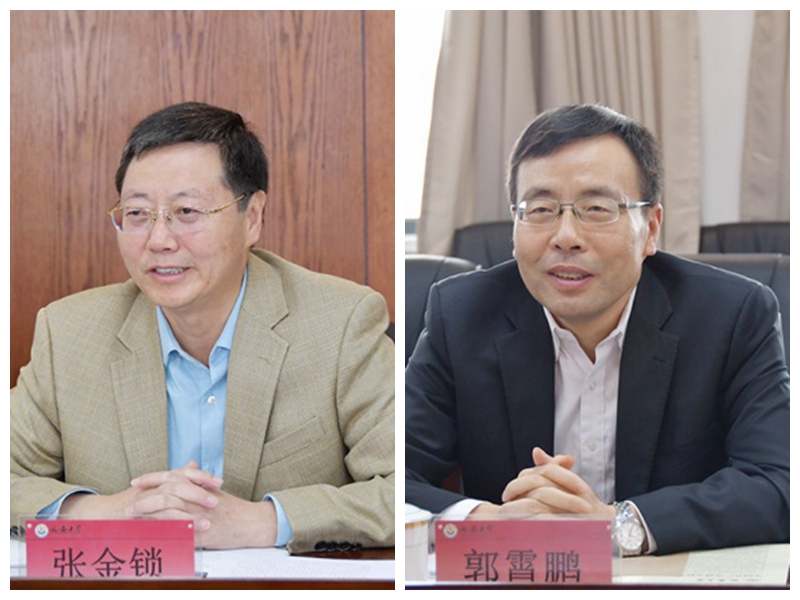 会上,张金锁对郭霄鹏一行到访表示热烈欢迎。他介绍了延安大学的历史沿革和基本情况,着重介绍了深入贯彻落实习近平总书记重要批示精神加快学校发展的路径与举措。他指出,延安大学不断凸显延安精神育人、学科专业发展、服务区域社会和红色教育培训等办学特色,着力提升人才培养、科技创新、师资队伍、开放办学、现代大学治理水平,以博士点申报和“一流学科”建设为引领,正朝着建成高水平教学科研型大学的奋斗目标不断前行。他希望两校切实发挥各自的学科专业优势,加强沟通联系,携手共创两校合作发展的新局面。