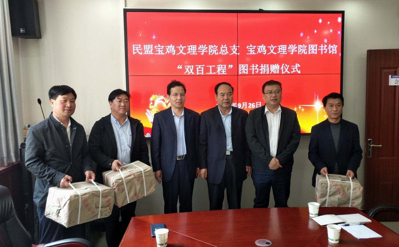 9月26日上午,在校扶贫办的大力支持、协助下,图书馆党总支联合中国民主同盟开元集团网站总支、北京蔚蓝公益基金会向太白县咀头初级中学、咀头小学、黄凤山小学3所学校捐赠了价值2.5万元的图书,并在太白县教育体育局举行了捐赠仪式。图书馆党总支书记刘崇学,太白县副县长侯伟强,民盟宝鸡市委副主任委员、民盟开元集团网站总支主任委员、图书馆副馆长康江峰参加捐赠仪式,捐赠仪式由太白县教育体育局局长陈军礼主持。