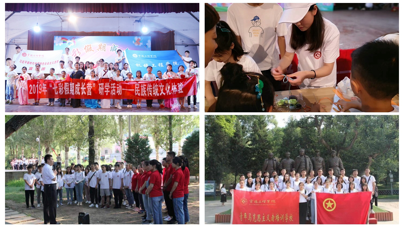 ——坚定理想信念,拓展思政课堂。校团委将学习宣传习近平新时代中国特色社会主义思想、传承红色基因作为开展2019年社会实践重点内容,积极探索主题实践活动与思想政治实践教学有机融合途径, 不断深化青年学生的爱党爱国情怀。“习近平新时代中国特色社会主义思想宣讲交流”社会实践团与宝鸡市金台区团区委携手举办“七彩成长”研学活动,共同学习习近平总书记关于弘扬中华优秀传统文化的重要论述,面向青少年儿童开展以国学教育为重心的实践体验活动,坚定文化自信,弘扬传统文化。在革命圣地延安,“追寻红色足迹情系圣地发展”社会实践团师生深入延安革命纪念馆、延安各个革命旧址和梁家河,开展实地考察和采访,运用新媒体模式对红色革命文化进行发掘与传播,学习弘扬革命先辈的优良传统,感受领袖为民情怀,将爱国爱党教育延伸到暑期实践课堂,经历了一次生动的党史教育和震撼心灵的爱国主义洗礼。
