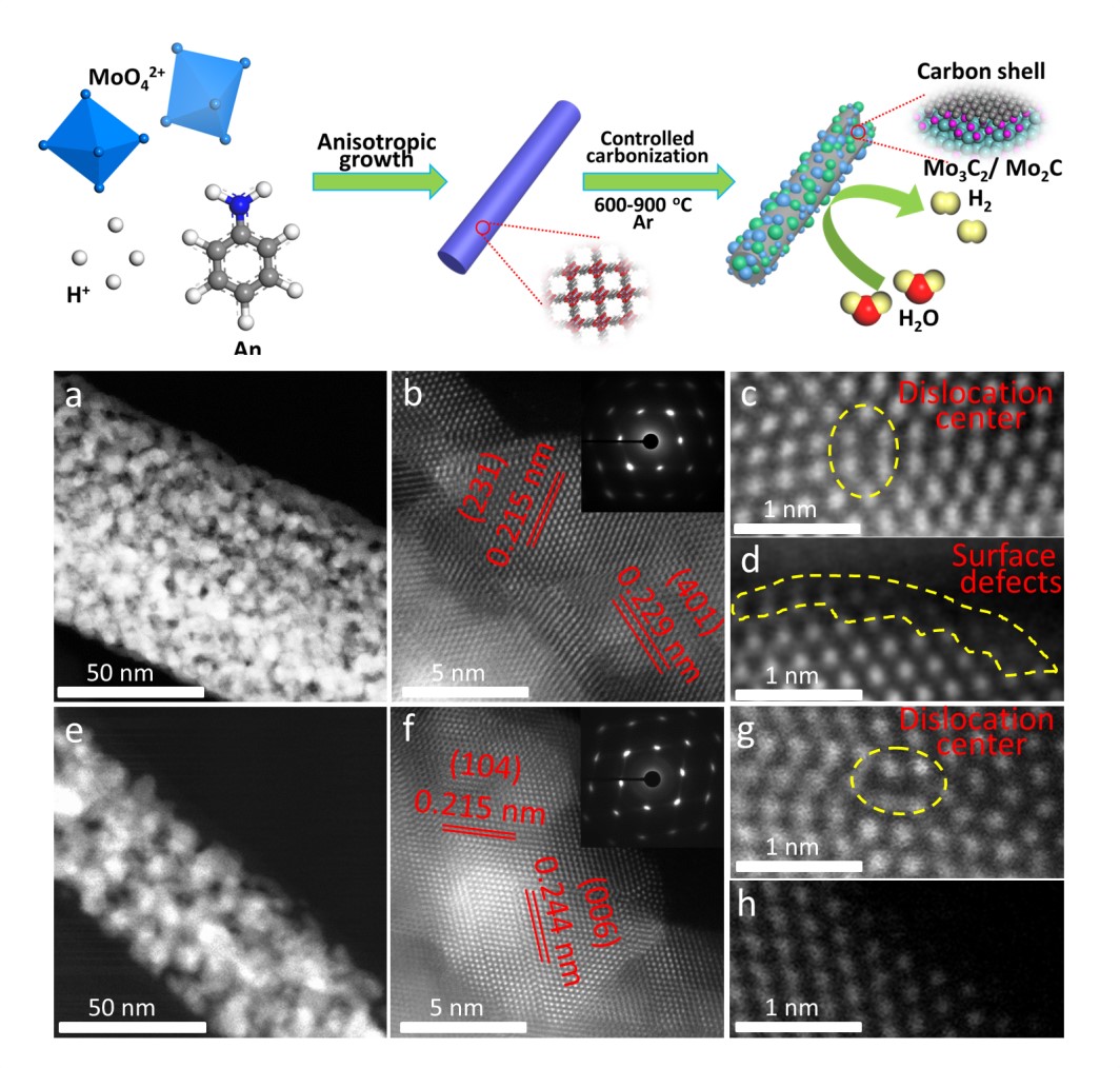该工作创新性地利用材料相变的规律,精准的控制材料表界面处的缺陷结构,实现了具有极高协同效应、高活性的新型Mo2C-Mo3C2异质纳米电催化材料。研究结果表明,设计电催化剂在在酸性和碱性介质中均表现出最佳的电催化活性:在10 mA cm-2电流密度下的过电势分别为134 mV和116 mV,具有小的塔菲尔斜率(64 mV dec-1),以及长期稳定性。这一研究成果对设计和制备高活性电催化剂材料具有重要指导意义,对非贵金属纳米级界面工程的工业水分解领域电催化剂的设计提供新的见解。该工作的发表不仅标志着开元与重庆文理学院的联合培养研究生工作进入一个新的阶段,也标志着开元光学工程专业的研究生培养水平逐步提高。(学科建设与研究生教育管理处、物理与光电技术学院 文/董宇 图/贾丽娜 审核/赵天绪、钱郁)