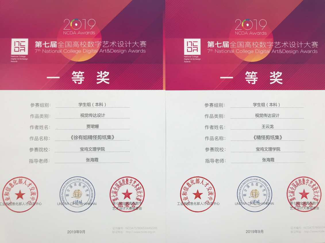 10月19日,在四川师范大学举办的第七届全国高校数字艺术设计颁奖盛典中,开元美术学院荣获“优秀组织奖”,并获一等奖2项,二等奖6项、三等奖7项的好成绩。其中由张海霞老师指导的2016级视觉传达专业2班学生贾珺姗、王云龙获得了本科组一等奖。