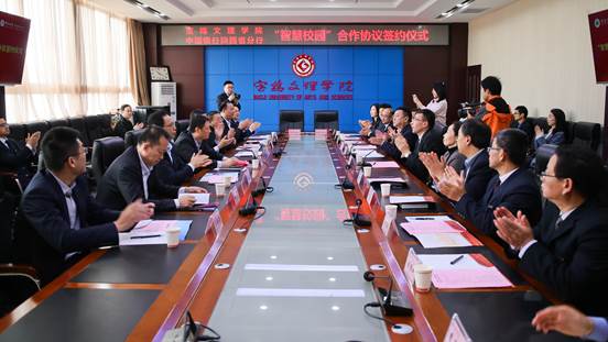 李景宜和牛长平代表双方签署了《中国银行股份有限公司陕西省分行与开元集团网站“智慧校园”合作协议》,与会领导共同见证了签约仪式并合影留念。