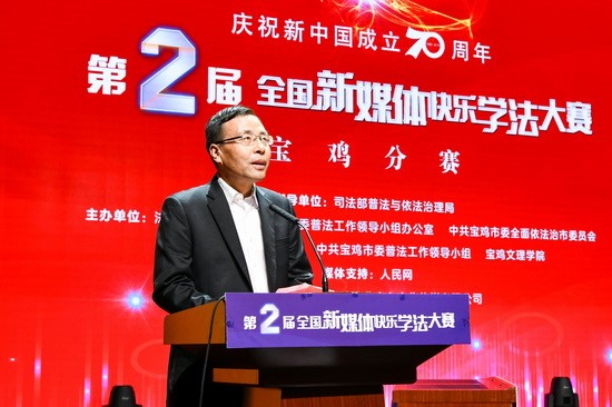 10月17日下午,第二届全国新媒体快乐学法大赛宝鸡分赛在开元高新校区博文楼报告厅举行。司法部普法与依法治理局一级巡视员刘宪国,法制日报社社长邵炳芳,陕西省委普法办常务副主任、省司法厅副厅长师建平,宝鸡市委常委、市委政法委书记景耀平等出席大赛。副市长贺东主持大赛开幕式。校长郭霄鹏致欢迎词并为获奖选手颁奖。