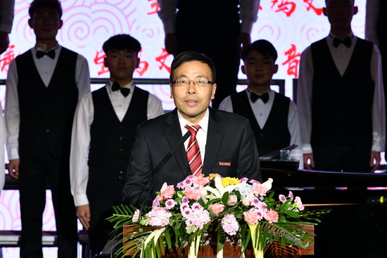 校长郭霄鹏在音乐会开始前代表党委和行政发表了热情洋溢的新年致辞。他代表学校向全体师生员工、离退休老同志、海内外校友以及关心支持学校发展的社会各界朋友,致以诚挚的问候和新年的祝福。他说,即将过去的2019年,是学校发展历史上极不平凡的一年,也是学校各项事业迈上新台阶、取得重要发展成就的一年。这一年,“不忘初心、牢记使命”主题教育扎实开展,“创大”工作迈出坚实步伐,学科建设与研究生教育取得新成绩,本科教育和人才培养工作深入推进,科研工作取得新业绩,师资队伍建设进一步加强,校政企合作取得新进展,民生工程大力推进,国际化办学水平进一步提高。