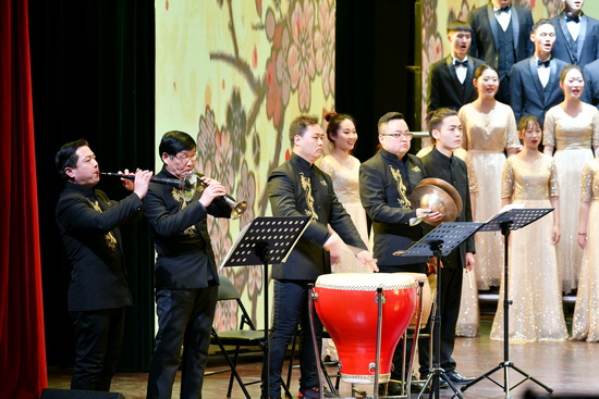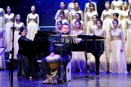 新年音乐会由音乐学院爱乐合唱团承办,白壮担任指挥。音乐会高潮迭起,掌声不断,充分展现了广大师生在新时代、新征程中谱写新华章的豪情壮志,表达了师生对新年美好生活的憧憬和向往,为观众带来了一场全新的视觉盛宴。(宣传部 文/陈宇秦 图/钟磊 审核/冯飞龙)
