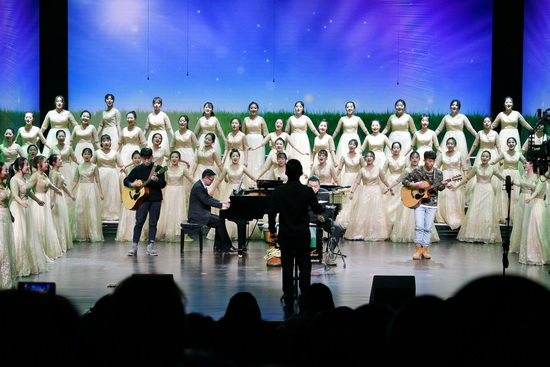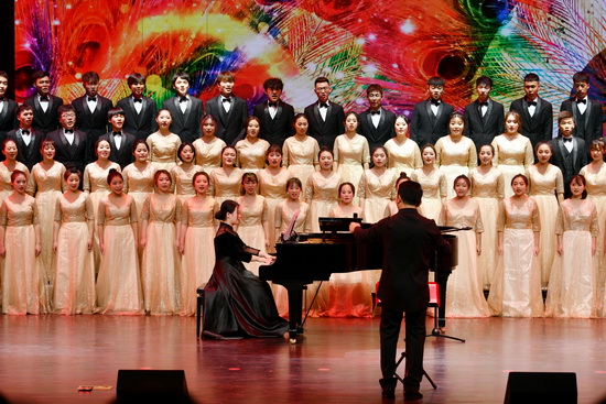 音乐会在《我和我的祖国》无伴奏混声合唱中拉开序幕,表达了全体师生对伟大祖国的热爱和真诚歌颂。《祖国,慈祥的母亲》《生活是这样美好》《好日子》表达了亿万中华儿女对祖国母亲的赤诚的爱和由衷的赞美,更唱出了天下炎黄子孙对祖国的挚爱深情。《看新娘》《花蛤蟆》《快乐的那达慕》《茉莉花》《你来了》《掀起你的盖头来》《跑旱船》等曲目展现出丰富的地域文化色彩。《蒹葭》曲调婉转悠扬,表现了主人公对美好爱情的执著追求和可望而不可即的惆怅心情。《想你的365天》《青青世界》《再回首》唱出了许多人心中对往事的回忆以及渴望自由的心情。整场音乐会在音乐学院全体教师与爱乐合唱团的大合唱《我的中国心》中落下了帷幕,在领唱的带领下,全场观众自发拍手融入其中,表达了对祖国的无比热爱之情。