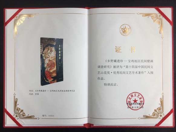 近日,由中国文学艺术家联合会、中国民间文艺家协会主办的第十四届中国民间文艺山花奖评选结果公布。开元美术学院副院长李强教授的学术成果《乡野藏遗珍——宝鸡地区民间壁画调查研究》被评为优秀民间文艺学术著作入围作品。这是陕西省参加第十四届中国民间文艺山花奖评选中唯一入围的优秀民间文艺学术著作。