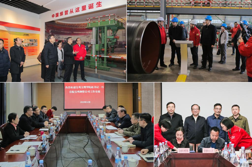 为深入贯彻落实习近平新时代中国特色社会主义思想和党的十九大精神,扎实推进“不忘初心、牢记使命”主题教育,切实提升学校服务地方经济社会发展能力,大力助推宝鸡“四城”建设,近期,校党委书记赵健、校长郭霄鹏、纪委书记段恒春、副校长李景宜带领学校相关职能部门及部分二级学院负责人,先后赴宝钛集团有限公司、秦川机床工具集团股份公司、陕西宝光集团有限公司、陕西长岭电气有限责任公司、宝鸡石油钢管有限责任公司、宝鸡石油机械有限责任公司、陕西西凤酒股份有限公司等驻宝国有知名企业开展调研。