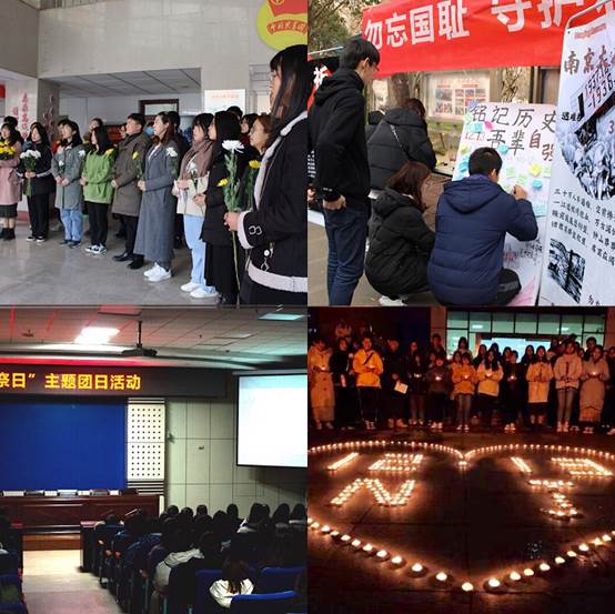 开展主题宣传。当天中午,校学生会、社团联合会和青年志愿者联合会组织了“铭记历史、砥砺前行”国家公祭日主题宣传活动,在活动中增长爱国主义精神,在实践中守望和平与正义。活动现场,广大青年学生认真观看宣传展板,饱蘸哀思,在纪念横幅上郑重签名,写下对和平的祈愿,并在明信片上留文,表达对殉难同胞的哀悼和“铭记历史,勿忘国耻,勤奋学习,砥砺报国”的决心。文学与新闻传播学院李辰表示:“作为新一代的中国青年,我们一定要要珍惜现在来之不易的和平幸福生活,反对一切战争,不忘国耻,振兴中华。”