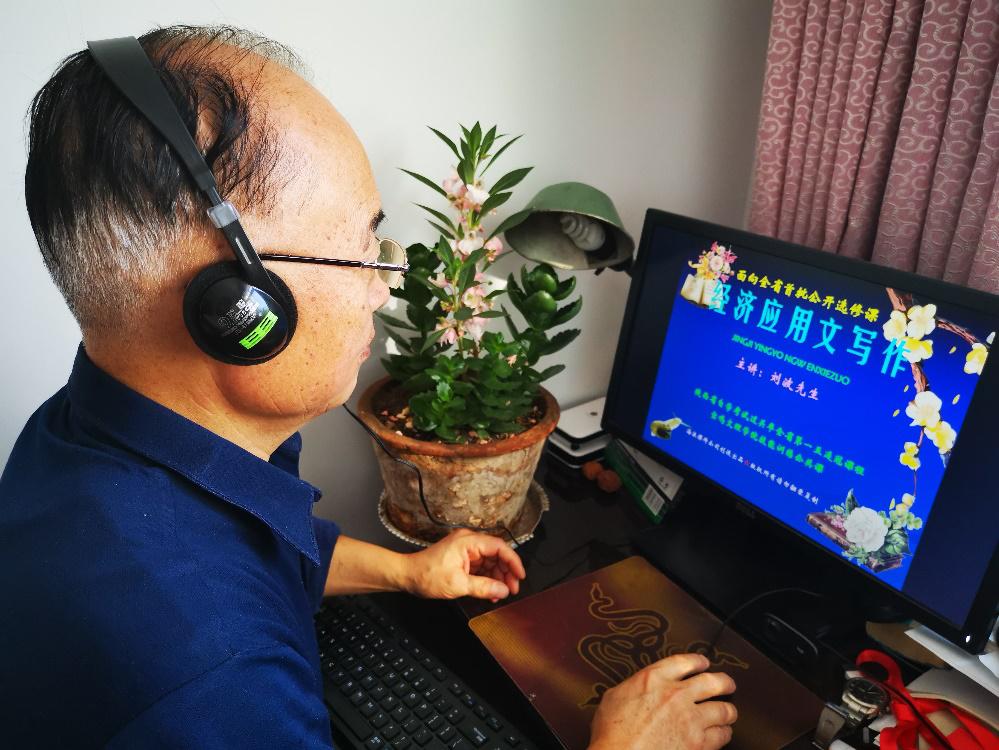 俗话说,“人过六十不学艺”,刘老师说,“学艺无非老半增”。于是他抹下脸,让儿子在网上给买了新电脑和音频、视频工具快递回来,下载了教学平台软件一个人在家里不分昼夜地折腾摸索,戴上老花镜翻阅平台群里的管理人员和其他教师的聊天记录,从中间寻找和他同类问题的解决办法。学校网上培训的时候,他一个人在家里就是打不开网络,连接不上视频,干着急没办法。刘老师说,学院对他的信任,就凭这一点,他就不能添乱和惹麻烦,况且学生还等着上课呢,因为没有老师上课不开这门课了,不仅对学生不负责任,对学校教师群体影响也不好。通过不断摸索,终于让网课按时开设了出来,不管效果怎么样,总算没给学校丢人、没有耽误教学大事。