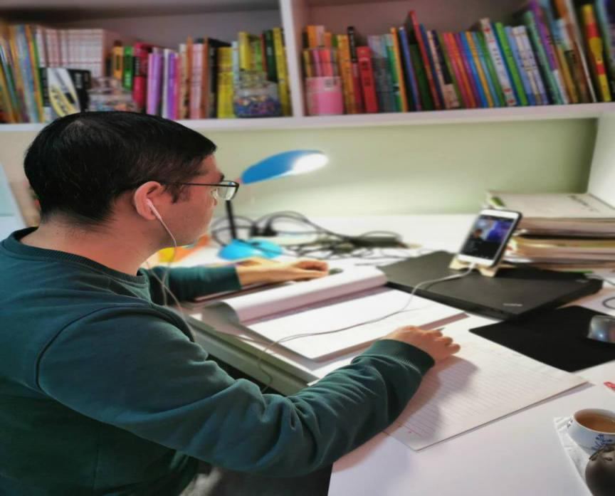 为了能够保证上课顺畅和直播环境安静,化学化工学院教师王冬梅老师常常搬着笔记本电脑,在家中寻找信号最好、位置最佳的地方,下载各种APP,不断摸索和测试,尝试各种教学模式……今天的网络教学效果证明凡是付出必有结果。