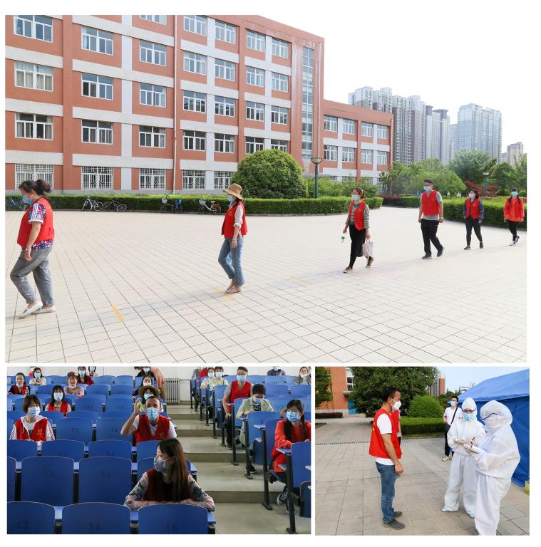 演练启动仪式上,李景宜宣布模拟演练开始。本次演练采取情景模拟和现场演练相结合的方式,分为进校流程演练、宿舍生活演练、食堂就餐演练、课堂教学演练四个环节,分别在学校大门、宿舍、餐厅、教学楼四个场景进行了模拟演练。在进校流程演练中,学校采取“一消二测三核四通过”的步骤,既设计了身体正常学生进校,也设计了学生入校时出现未戴口罩、体温≥37.3℃、健康码异常等特殊情况处理的演练;在宿舍生活演练中,既设计了学生返校当日进入宿舍演练和学生日常出入宿舍管理演练,也设计了入住宿舍后学生出现疑似症状的处理演练;在食堂就餐演练中,进行了洗手、测温、排队、取餐、就坐等多个细节的演练;在课堂教学演练中,从有序进入教学楼、教室就坐、正常上课到上课后学生自感发热等异常情况分别开展了演练。在整个演练过程中,各有关部门分工明确、配合密切、行动迅速、效果良好。