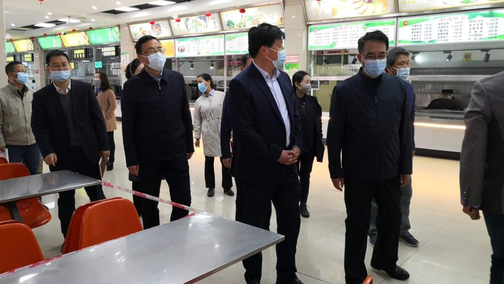 吴铁一行先后来到高新校区学生入校测温区、大学生餐厅、学生公寓、隔离区、校医院、防疫物资储备库等地,重点了解学校疫情防控工作、应急预案落实、食品卫生安全、医护救治力量、隔离床位设置、防疫物资储备和校园安全等情况,同时就相关工作进行了现场指导。