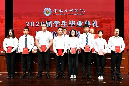杨子元宣读了2020届硕士研究生优秀学位论文获得者、优秀毕业研究生、优秀本科毕业生表彰决定。王富平宣读了2020届硕士研究生硕士学位授予决定、本科生毕业资格审查结果和学士学位授予决定。学校学位委员会主任、校长郭霄鹏教授为硕士学位获得者、学士学位获得者代表扶正流苏、颁授学位证书。学校党政领导为优秀毕业研究生代表和优秀本科毕业生代表颁发荣誉证书,为“喜问奖教奖学基金‘秦岭才俊’硕士奖、博士奖”获奖学生代表颁发荣誉证书和奖牌。