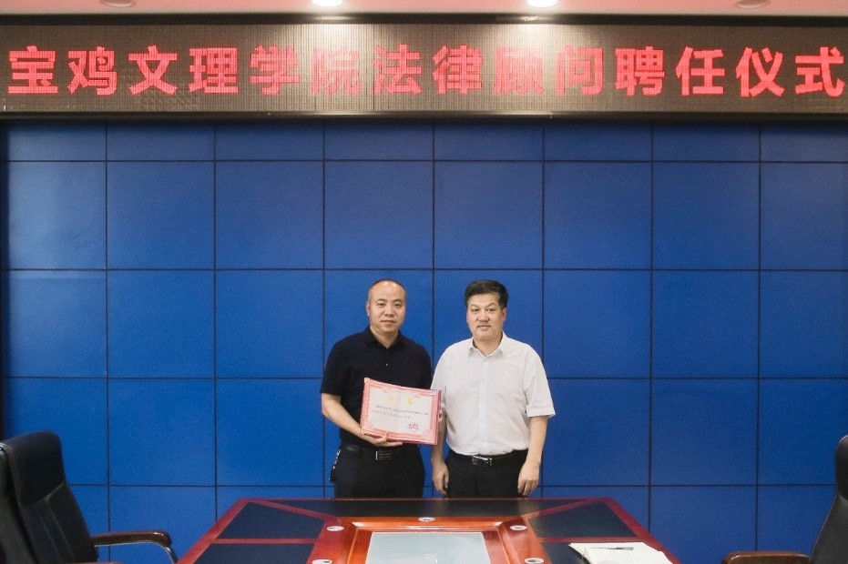 7月10日上午,学校在高新校区806会议室举行了法律顾问聘任仪式,副校长王富平出席聘任仪式,党政办公室主任任红亮主持聘任仪式。