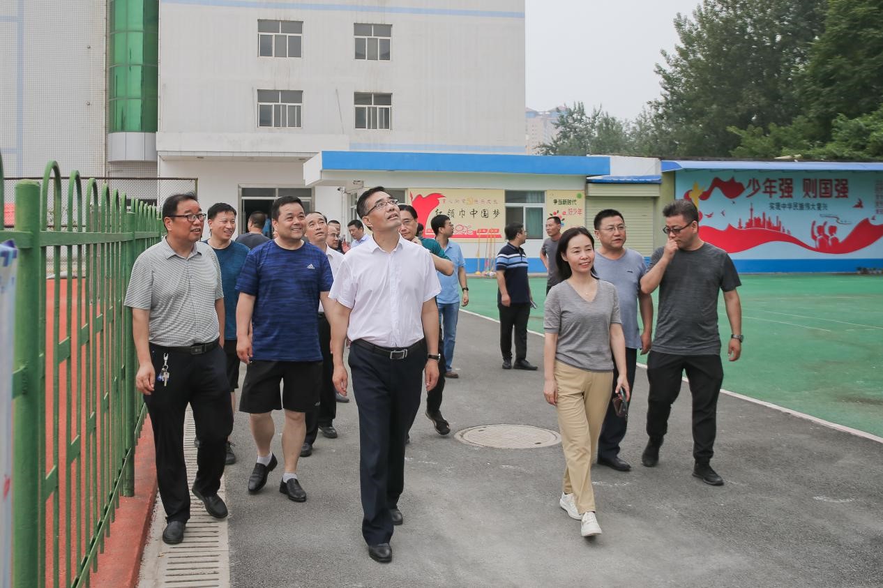 在附属学校检查时,校领导实地查看了附属学校假期教学楼美化工程进展情况,听取了附属学校招生、管理、师资队伍、基础设施等情况汇报。校领导强调,附属学校是宝文理为解决教职工子弟就学和师范生实习而自筹经费设立的九年一贯制学校。服务好教职工、教育好教职工子女是附属学校办学的重要目标之一。一是要进一步解放思想,开阔思路、开阔眼界,不断在提高教育教学质量上下功夫,努力做到让学生满意,让教职工放心;二是要加强管理,完善制度,形成合力,不断在“破难题、补短板、建机制、提质量”上下功夫,努力在管理上取得新提升;三是要加大宣传力度,及时宣传学校的办学理念、办学特色、办学成果,让社会更多地了解学校、支持学校,努力营造有利于学校教育教学事业和谐发展的良好舆论环境。