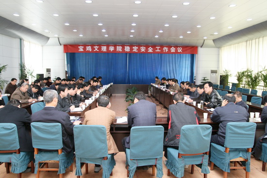 在全院深入学习实践科学发展观活动的重要时刻,4月4日下午,我院在凤县政府招待所礼堂召开稳定安全工作会议。院党委书记赵怀礼,院长王志刚,院党委副书记米晓东、李全武,副院长傅志军、赵荣侠和各系党总支书记、主任,各部门主要负责人参加了会议。会议由米晓东主持。