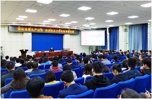 栾宏从提高政治站位、充分认识加强作风建设的重要性,勇于自我革命、着力增强改进工作作风的自觉性,主动担当尽责、全面提升工作作风和工作水平等三个方面进行了讲解。他指出,机关党员干部要重视和解决好学习意识不强、能力不足“不能为”,进取心欠缺、担当不足“不敢为”,精气神不佳、敷衍推诿“不想为”,服务意识不强、效率不高“不作为”等问题。他要求,机关党员干部要坚定政治站位,锤炼过硬党性;加强理论武装,坚定理想信念;强化服务意识,密切联系师生;严守纪律规矩,树立良好形象;加强团结协作,形成工作合力;珍惜工作岗位,厚植爱校情怀。