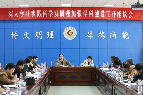 王院长在会议总结中强调指出,本次会议既是学习实践科学发展观的座谈会,也是学院学科建设工作的调研会。学科实力和科研水平体现着一所大学的办学实力和办学水平,学科建设是大学建设的龙头工程,学科实力是学校的核心竞争力。目前我院学科建设要立足于学院经过几十年发展壮大,并即将成为“新增硕士学位授予单位的立项建设高校”,迈出申硕历程中具有决定性意义的一步,为实现办学层次的提升创造前提条件的背景,从如何进一步加强学科建设和科研工作的高度上来认识,要明确学院学科建设的总体目标,正确处理好重点学科与一般学科发展的关系,通过重点学科带动一般学科,促进学院学科建设和科研工作整体发展,构建一个结构合理、重点突出、特色鲜明、充满活力的学科体系。同时,王院长还要求各系部及省级重点实验室要围绕座谈会确定的18个专题进一步调研,形成书面材料并报送科技处,科技处要形成学院学科建设的整体调研报告,推动我院学科建设科学发展。(院长办公室供稿)