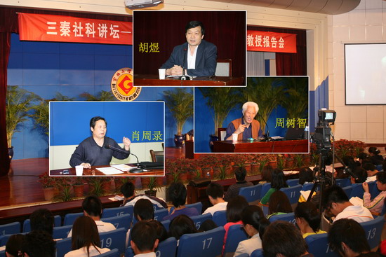 王志刚代表学院对三位专家的到来表示欢迎,他说,“三秦社科坛坛”(长安讲坛)自开办以来,著名的专家学者多次来我院讲学,对我院学科建设和科研工作支持、推动和促进很大,周先生、胡先生和肖先生三位专家是我省学术界的著名专家,也是我们敬重的学者,此次能来我院讲学,是广大师生的荣幸。他从学院历史、师资队伍、学科建设、区位优势、开放办学等八个方面介绍了学院发展情况,希望各位专家能多关心、支持我院建设发展。
