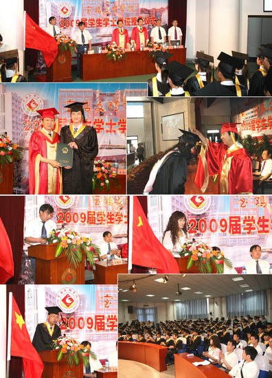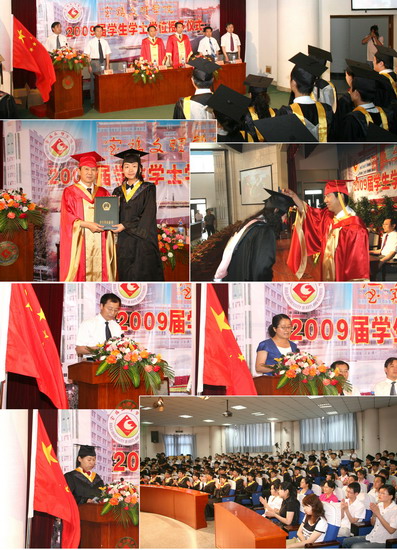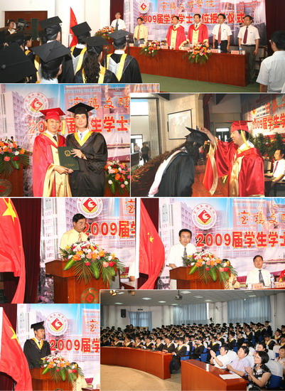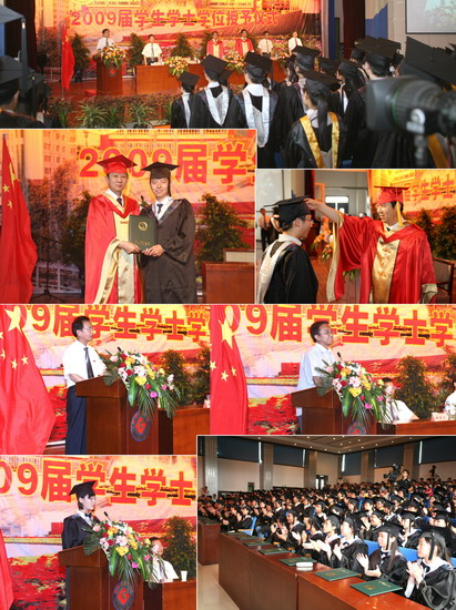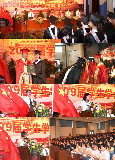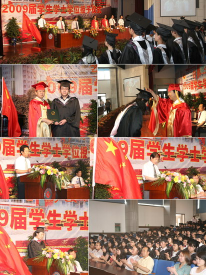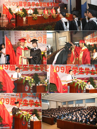 6月11日到6月18日,我院以系部为单位举行了2009届学生学士学位授予仪式。院长、院学位委员会主席王志刚,副院长、院学位委员会常务副主席傅志军,副院长、院学位委员会副主席赵荣侠,教务处处长杨子元,高教研究室主任、教务处副处长田延峰,教务处副处长孙新和各系党总支书记、系主任以及各系其他领导、部分教师、2009届本科生毕业生、部分在校生代表参加了学士学位授予仪式。
