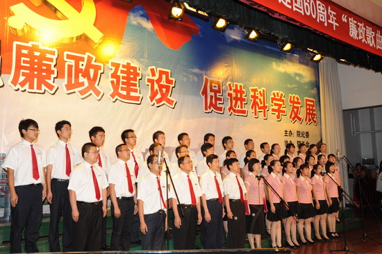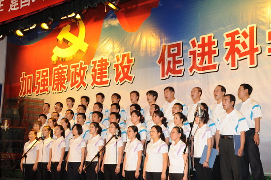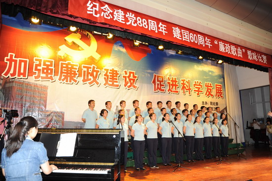 在庆祝中国共产党建党88周年、喜迎建国60周年到来之际,由院纪委、院工会、党委宣传部、院团委举办的以“加强廉政建设,促进科学发展”为主题的 “廉政歌曲”演唱比赛于6月19日下午和晚上在新校区音乐厅举行。有20个党总支代表队参加了比赛。