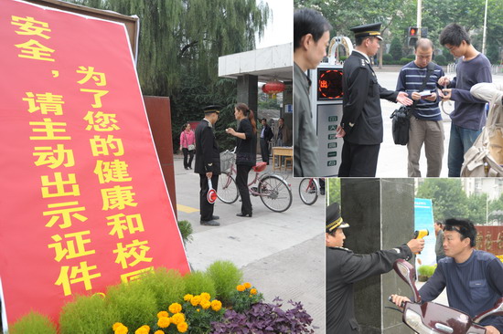 院长王志刚、副院长王普藩早8时左右首先在老校区大门口检查准入式门禁制度的执行情况并慰问保卫处工作人员,王院长强调指出:门禁制度是“外堵输入”的一个重点环节,要求教职员工要充分理解和支持,并配合做好工作,要求保卫处工作人员尽职尽责做好工作,在严格执行门卫制度的前提下,也要做好人性化管理,使准入式门禁制度能够有效地执行好。