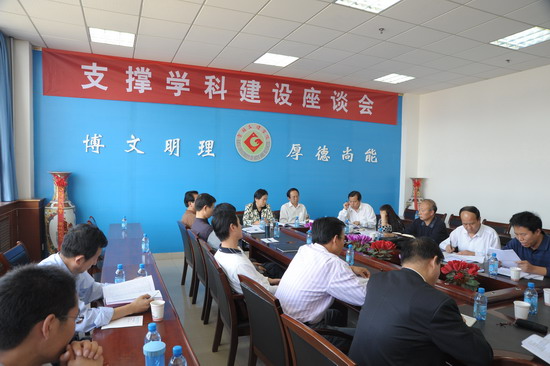 座谈会上,政法系主任赵克平、数学系主任赵天绪、物理系主任袁都奇分别对我院支撑学科—哲学学科建设、数学学科建设、物理学学科建设的总体目标、具体目标、实施细则和存在问题、实验平台、学科队伍、科学研究、学术会议和研究生教学、资料建设等方面分别作了汇报。三个支撑学科的学科带头人以及相关系部分中青年学术骨干教师代表分别就联合培养硕士研究生、高层次项目申报、仪器设备、师资队伍和图书资料建设、科研氛围与环境等问题提出了建设性意见和建议。科技处、人事处、设备处、图书馆、杂志社等相关职能部门负责人就三个支撑学科的学科建设相关政策、现状及工作打算等方面的情况进行了通报和表态,他们表示将全力以赴、从各个方面支持哲学、数学和物理学三个支撑学科的建设工作。