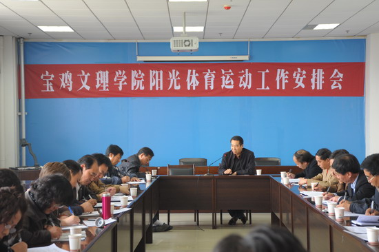 教务处处长杨子元在会上就我院进一步深入开展学生阳光体育运动的相关事宜作了说明。体育系副主任袁惠生就我院迎接省教育厅、省体育局、共青团陕西省委对高校阳光体育运动专项检查评估任务分解表做了详细的解读。(教务处供稿)