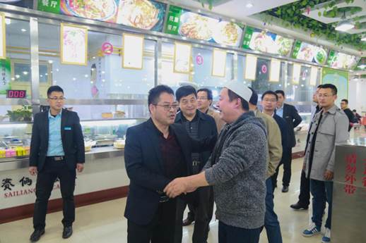 在新校区学生餐厅,栾宏一行查看了饭菜质量、就餐环境等,尤其就清真餐厅的营业时间、饭菜品种与清真餐厅负责人进行了详细交谈。他强调,要充分尊重少数民族学生的风俗习惯,遵守国家相关政策,切实按照民族习俗做好开元少数民族学生的餐饮工作,不断提高管理水平。