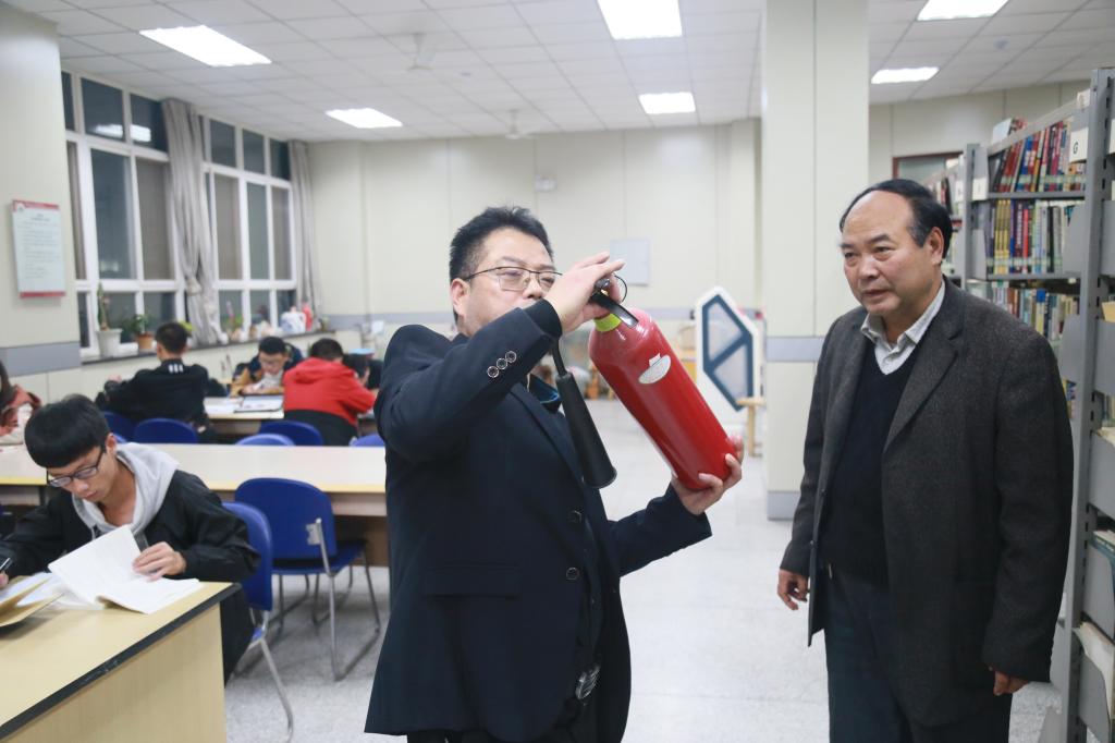 在新老校区图书馆、综合楼,栾宏对各楼内的消防设备是否正常运作、应急逃生通道是否畅通、灭火器材是否按要求配备等情况进行了细致检查,要求一定要按照相关规章制度,及时检查消防器材,确保安全。