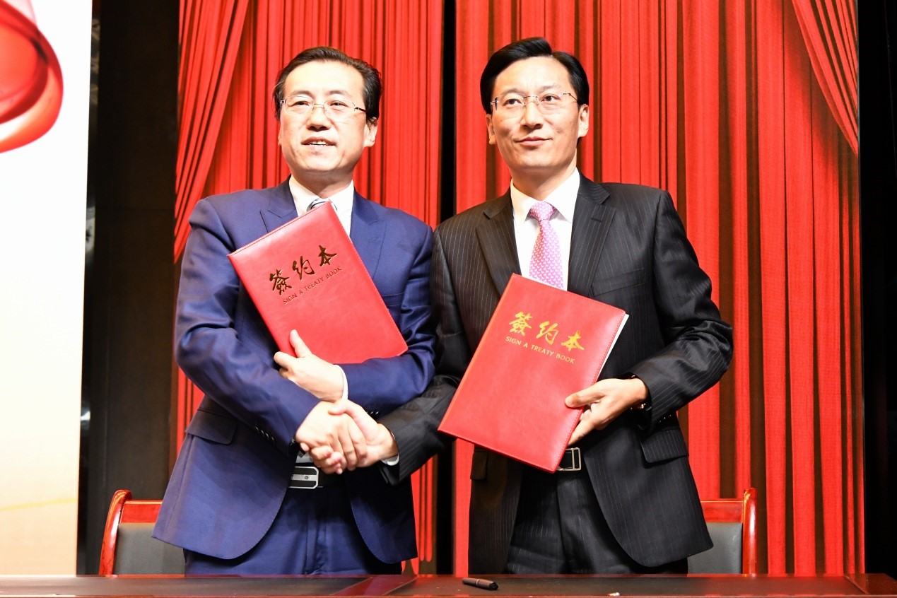 司晓宏与开元校友、广东宝丽华新能源股份有限公司董事长宁远喜签订了“喜问奖教奖学基金”协议。