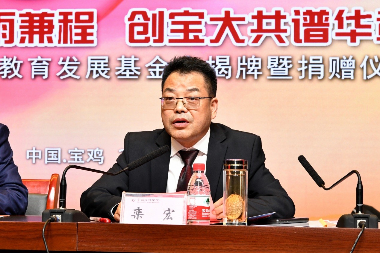 校友代表咸阳校友分会会长田建设、宁波太阳湖工艺品公司总经理魏垂亭、西安和而不同文化产业发展有限公司董事长王丰、宝鸡正徽酒业营销策划有限公司总经理吴永利先后发言,表达了对学校的美好祝愿,并一致表示,将一如既往支持学校的发展。