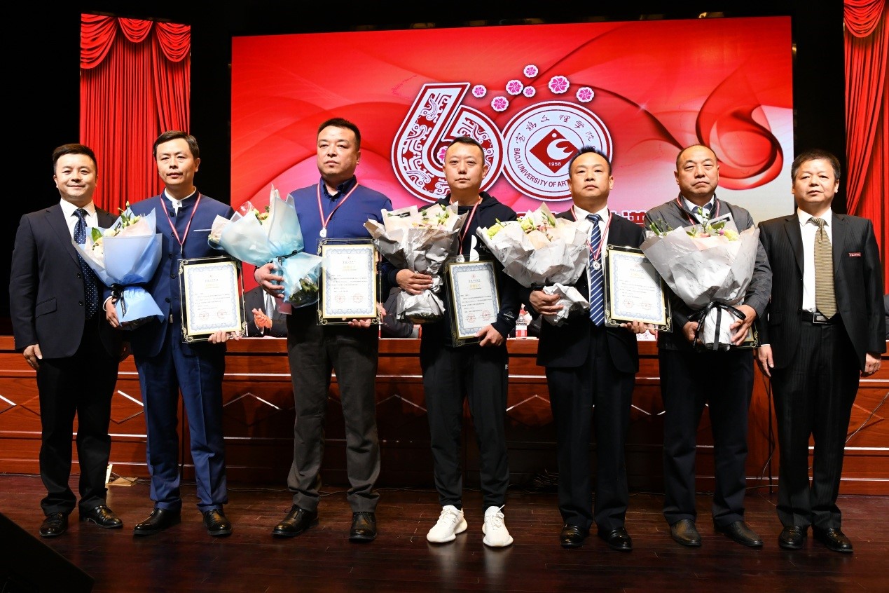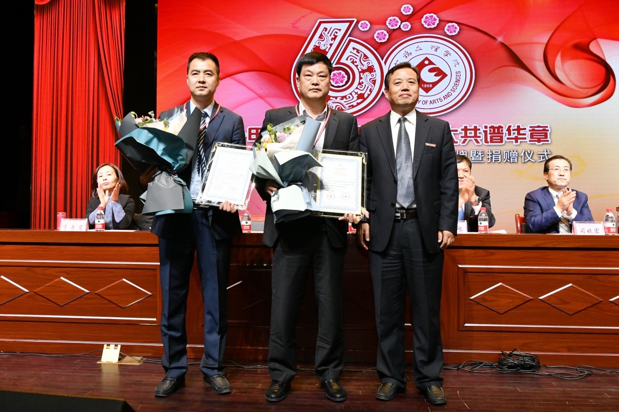 白黎、司晓宏、傅志军、杨子元、段恒春、李景宜分别代表学校接受捐赠,并为捐赠者佩戴捐赠纪念章、颁发捐赠证书。