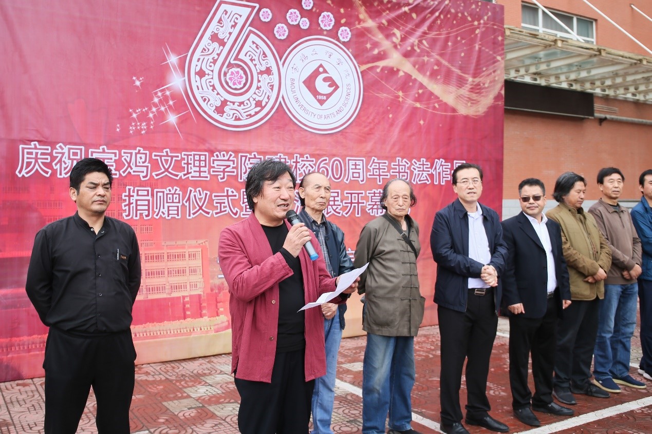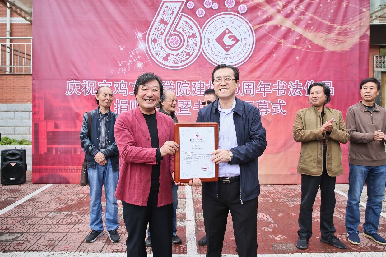 活动现场,司晓宏代表学校向宝鸡市书法家协会颁授捐赠证书并宣布书法展开幕。