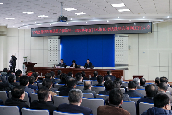 白黎代表学校领导班子作了2016年度述职报告,学校领导班子成员先后围绕思想政治素质、组织领导能力、工作作风、工作实绩、廉洁自律等方面作了述职报告。