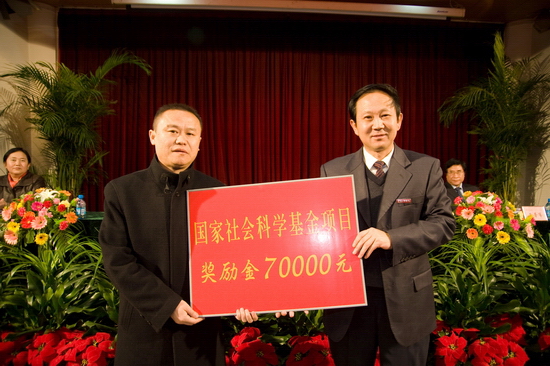 在上午的会议上,还对我院2009年获准立项的国家社会科学基金项目主持人高强进行了奖励,对2008年、2009年我院获得省级科研项目的主持人进行了表彰,并宣读了开元集团网站关于成立新增硕士学位授权单位立项建设领导小组及授权学科、支撑学科建设领导小组等文件。