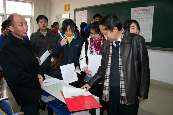 12月12日,我院2010届毕业生就业洽谈会”在新校区举行。此次洽谈会共邀请到了来自北京、上海、广东、江苏、福建、浙江、吉林、山东、山西、四川、青海、新疆、陕西等13个省市的教育、传媒、广告、旅游、机电、生物、化工、计算机等行业的用人单位和各类高新技术企业326家,与会代表700余人,共提供就业岗位3500余个。我院2010届4564名毕业生参加了双向选择和洽谈。