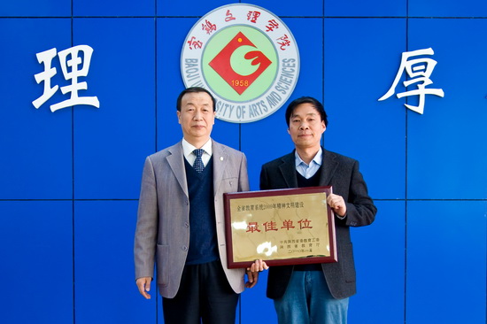 会上,赵怀礼和李全武分别为获得全省教育系统2009年度精神文明和宣传思想工作“创佳评差”最佳单位的哲学系,获得全省高校校园文化建设优秀成果二、三等奖的党委宣传部、学工部和团委颁发了奖牌。